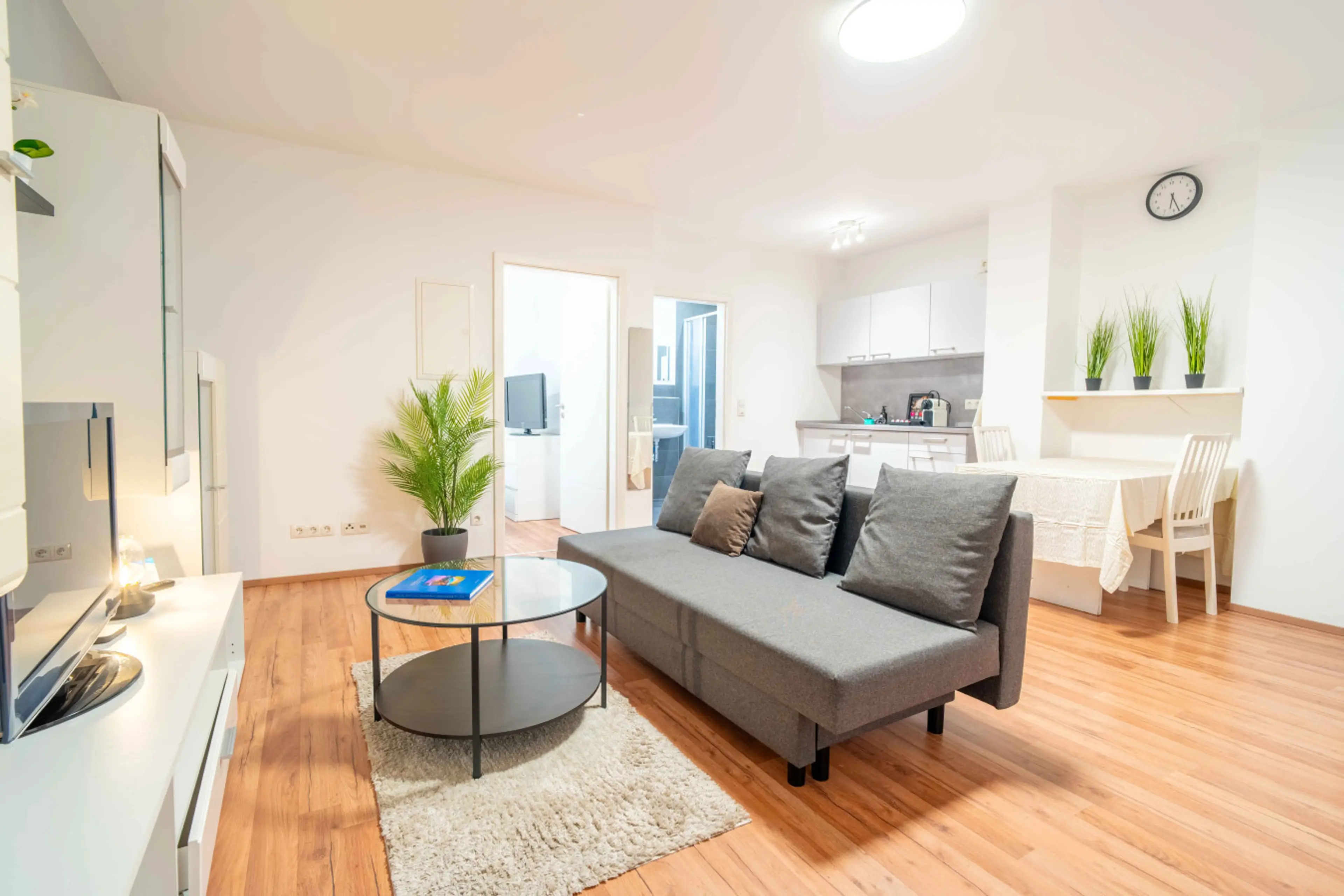Modernes, liebevoll eingerichtetes kleines Apartment in der südlichen Vorstadt von Koblenz, nur wenige Minuten mit dem Auto von der Hochschule entfernt. Der helle Wohn- und Essbereich bietet eine gemütliche Atmosphäre und eine praktische Schlafcouch. Die ausgestattete Küche enthält alles für den täg...